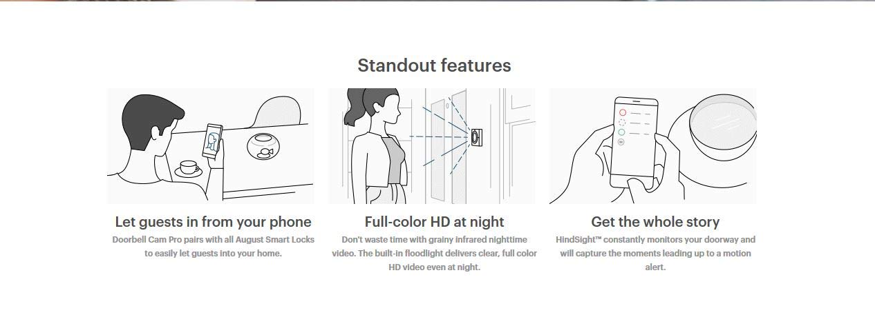 - Let guests in from your phone. Doorbell Cam Pro pairs with all August Smart Locks to easily let guests into your home.